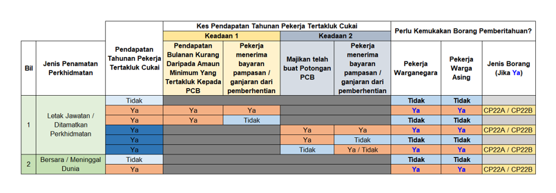 Jadual dibawah adalah panduan umum bagi menentukan keperluan pengemukaan borang pemberitahuan CP21: